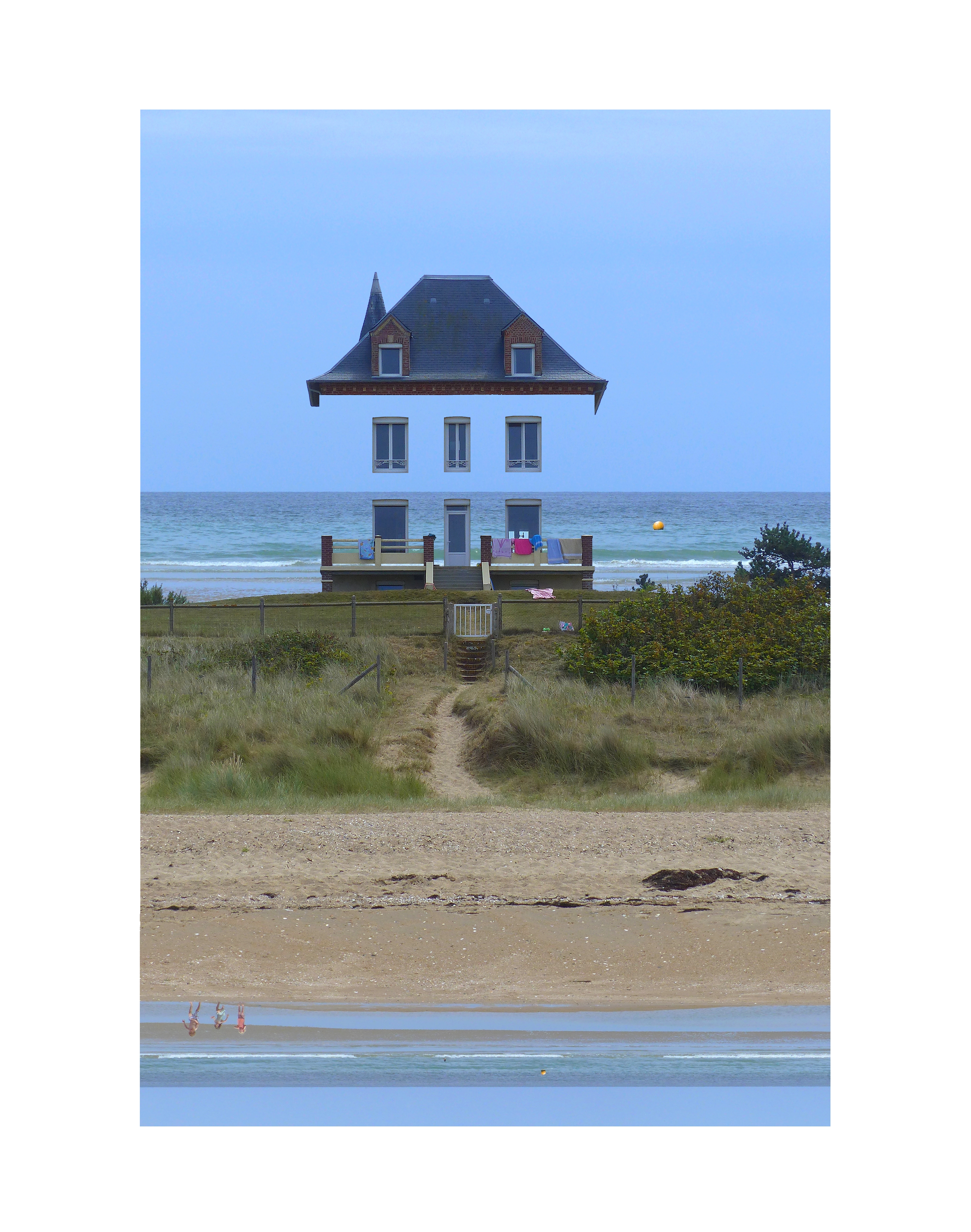 Une maison en front de mer se mélange à cette étendue aquatique à travers un jeu de miroir entre les points de vue du dedans et du dehors, les enfants faisant joyeusement des allers retours entre les deux.